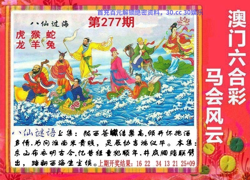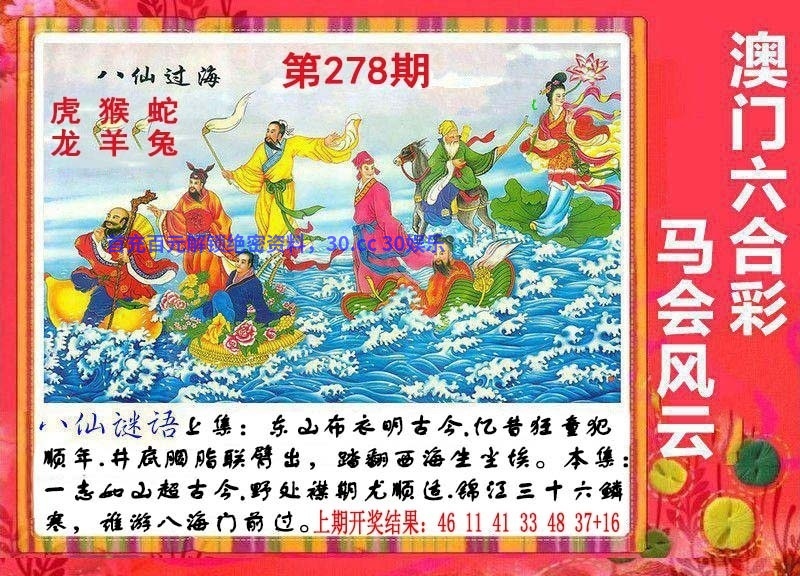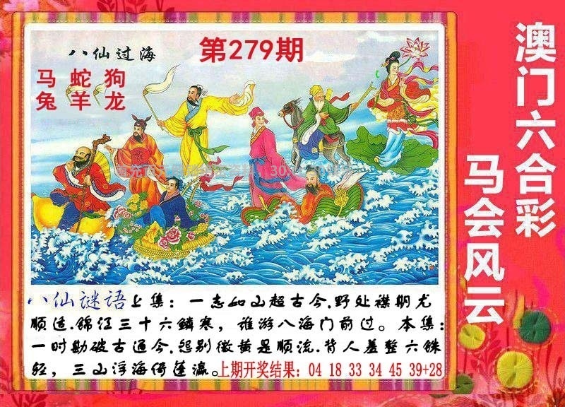 279期八仙谜语:一时勘破古通今,怨别微黄是顺流,背人羞整六铢轻,三山浮海倚蓬瀛。