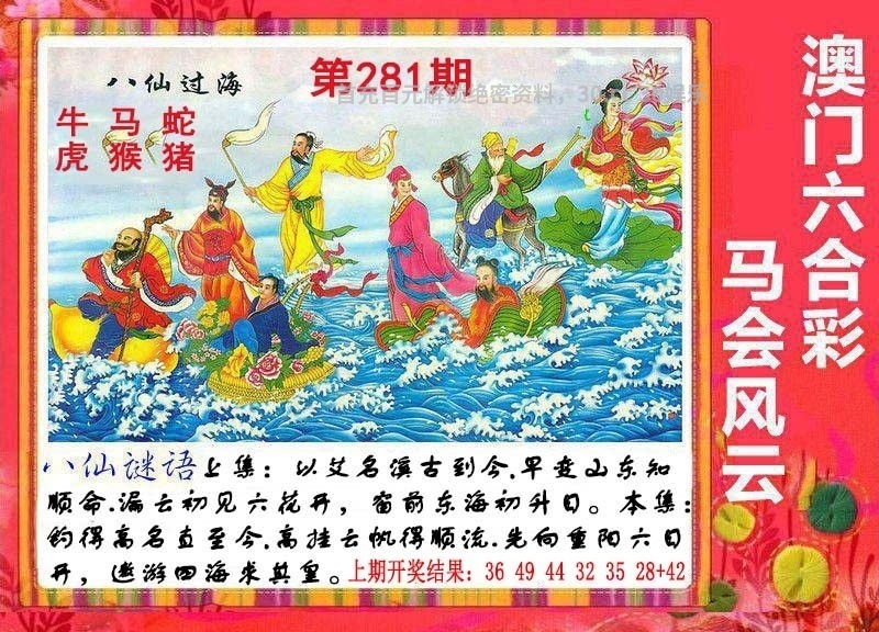 280期八仙谜语:以艾名溪古到今,早变山东知顺命,漏云初见六花开,窗前东海初升日。